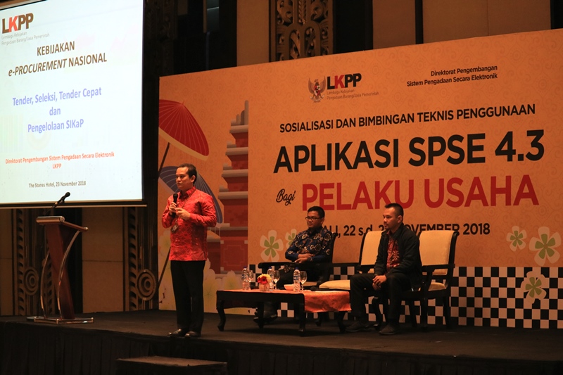 Bali – Lembaga Kebijakan Pengadaan Barang/Jasa Pemerintah (LKPP) melalui Direktorat Pengembangan Sistem Pengadaan Secara Elektronik (SPSE), mennyelenggarakan acara Sosialisasi dan Bimbingan Teknis Penggunaan Aplikasi SPSE 4.3 bagi Pelaku Usaha, 22 s.d. 23 November 2018, di Hotel The Stone, Legian, Bali.
