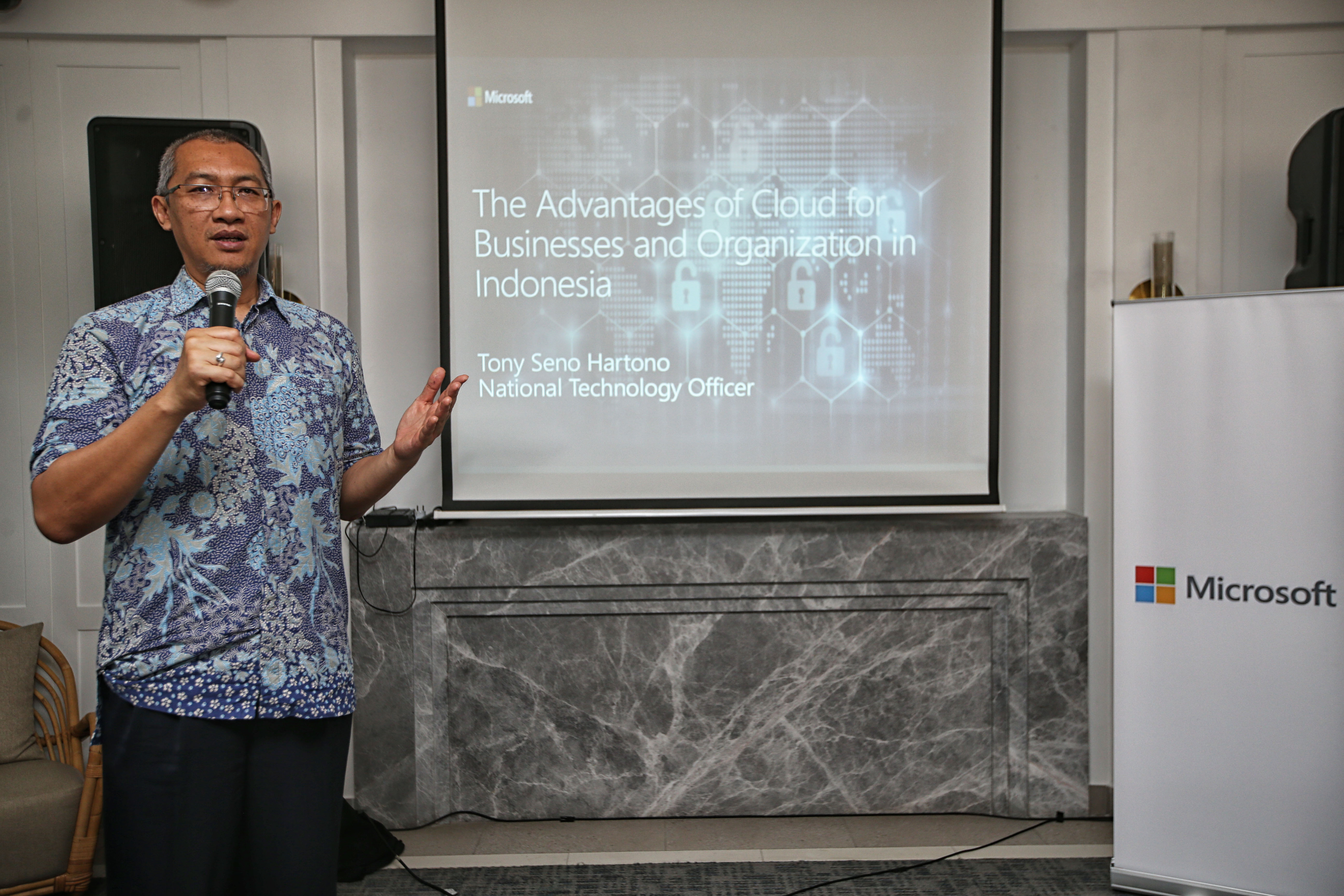 Tony Seno, National Technology Officer Microsoft Indonesia di acara Microsoft Year-End Media Gathering di Jakarta, (12/12)
