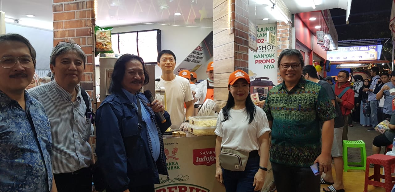 Fransiskus Welirang, Direktur Bogasari (ketiga dari kiri) dan Jenny Widjaja, President Director Readboy Indonesia (kedua dari kanan) di booth Paberik Mie, Jakarta Fair, (20/6).