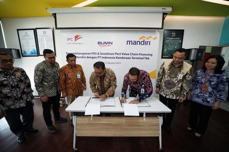 Acara penandatanganan PKS & Sosialisasi Port Value Chain Financing Bank Mandiri dengan PT Indonesia Kendaraan Terminal Tbk dihadiri oleh Direktur Utama IPCC, Chiefy Adi Kusmargono, Komisaris PT IKT Tbk, Bay M. Hasani, SVP Corporate Banking Bank Mandiri, Yusak L. S. Silalahi, Tri Nugroho dan SVP Transaction Banking Wholesale Sales Bank Mandiri.