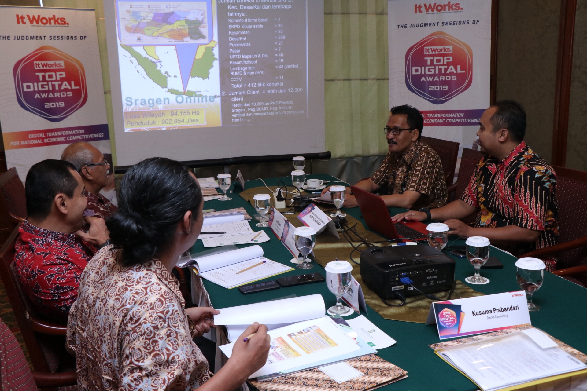 “Saat ini kami juga memiliki banyak aplikasi untuk berbagai layanan masyarakat berbasis digital yang terintegrasi dengan konsep smart city. Seperti aplikasi berbagai perizinan secara online, layanan kesehatan, pendidikan, dan lainnya. Supaya aplikasi dan layanan ini bisa cepat dan mudah diakses masyarakat, termasuk yang ada di pedesaan, tentu harus pula didukung dengan ketersediaan jaringan infrastruktur digital yang memadai. Karena itu, kami juga fokus mengembangkan infrastruktur ini dengan menggelar kabel FO hingga wilayah luar perkotaan,” papar Sekretaris Dinas Komunikasi dan Informatika (Kominfo) Kabupaten Sragen, Rahmad Purwadi didampingi Kasi Pengembangan Sistem Informasi, Lukman Andri TN saat presentasi dan wawancara penjurian “Top Digital Award 2019” yang diselenggaran Majalah ItWorks pada (15/10) di Gedung WTC I Jl Jenderal Sudirman Jakarta.