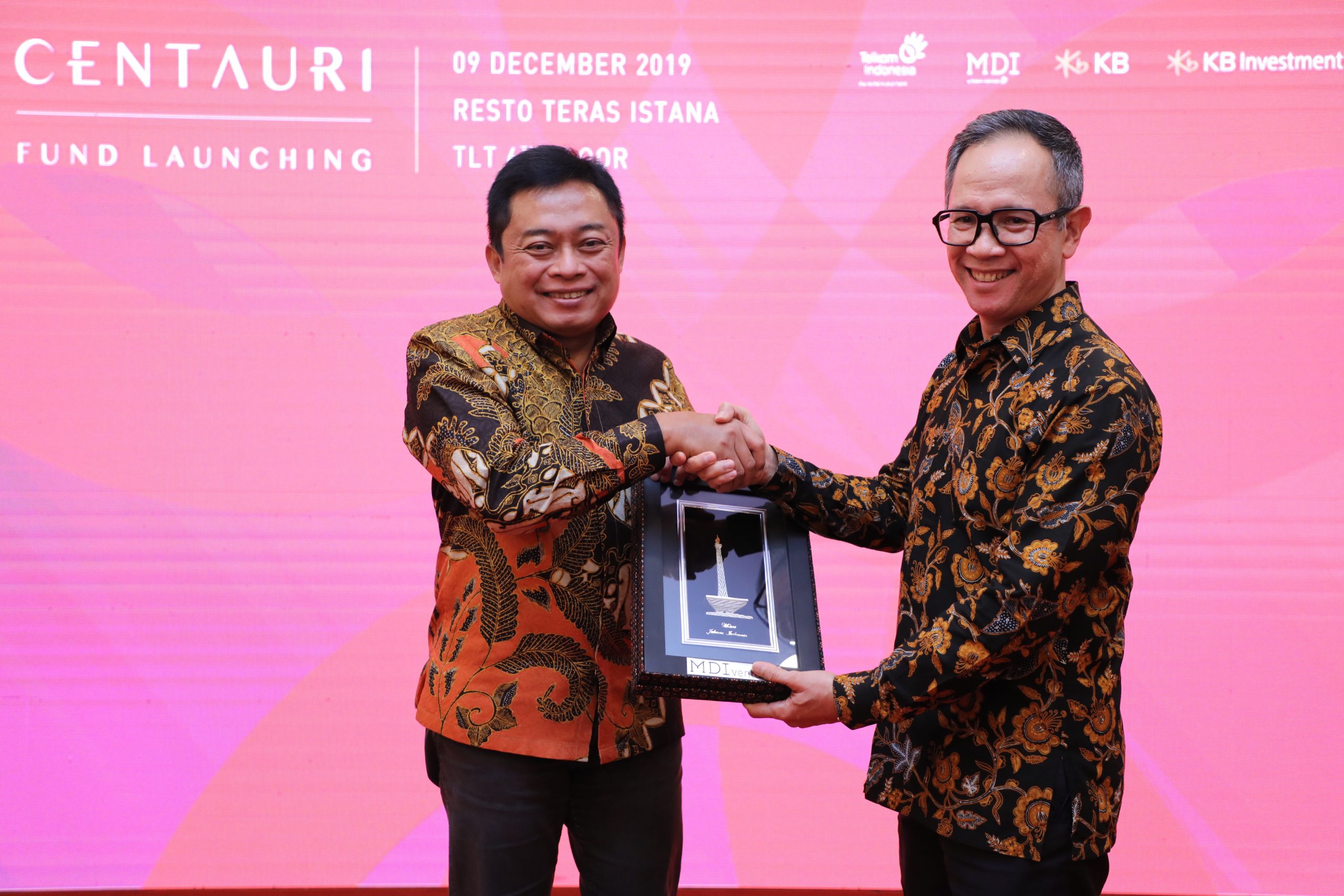 PT Telkom Indonesia (Persero) Tbk (Telkom) melalui anak usahanya MDI Ventures bersama perusahaan asal Korea Selatan KB Financial Group meluncurkan perusahaan dana modal ventura Centauri Fund di Telkom Landmark Tower, Jakarta.