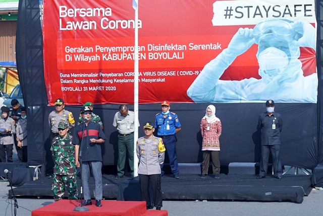 Sebelum kegiatan dimulai, dilakukan apel gabungan yang dipimpin Wakil Bupati (Wabup) Boyolali, M. Said Hidayat. Sebagaimana dilansir web resmi Pemkab Boyolali, apel digelar sebagai persiapan pencegahan penyebaran Corona Virus Disease (Covid-19) di Kota Susu yang dilakukan di area Monumen Susu Murni Boyolali, pada Selasa (31/3/2020). Para petugas gabungan terlihat berbaris dengan jarak 1,5 meter saat apel.