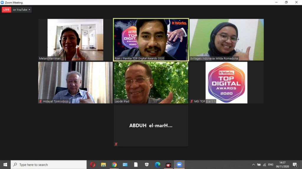 PT 8villages Indonesia saat mengikuti Penjurian TOP DIGITAL Awards 2020 yang berlangsung secara daring, Jumat, (6/11/2020) (Dokumentasi: IT Works).
