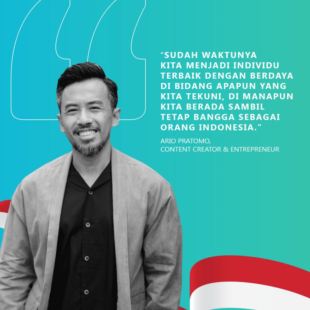 “Sumpah Pemuda bukan lagi cuma mengucap berbangsa, bertanah air, dan berbahasa satu saja. Sudah waktunya kita menjadi individu terbaik dengan berdaya di bidang apapun yang kita tekuni, di manapun kita berada dengan bahasa apapun sambil tetap bangga bahwa kita orang Indonesia. Bisa kan?” pesan Ario Pratomo.