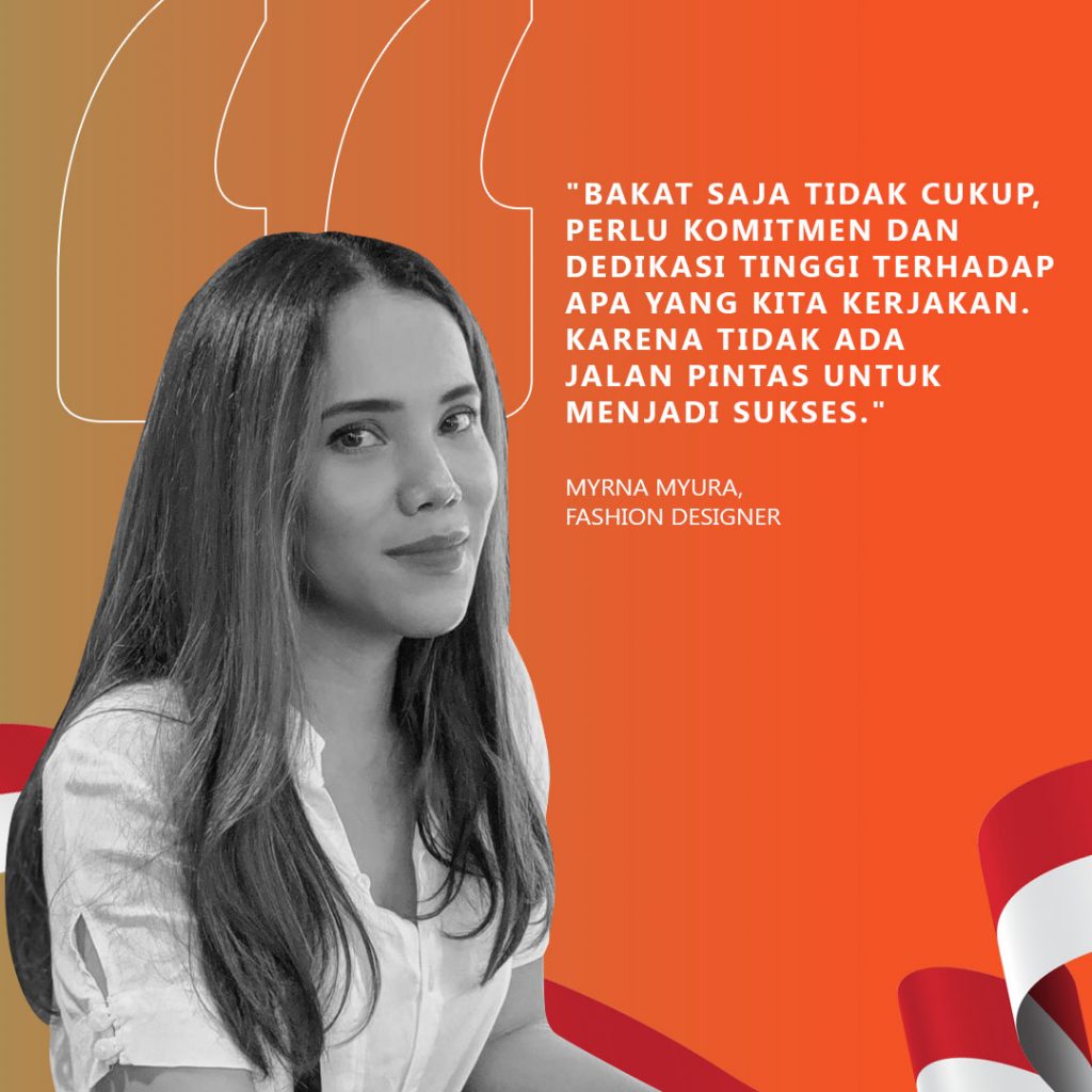 Fashion designer muda Indonesia, Myrna Myura, yang dikenal sangat detail dalam mendesain dan membuat pakaian, terutama kebaya pernikahan. Memulai karir sejak usia 20-an, kini iaa telah memiliki ribuan klien, termasuk para pesohor tanah air. “Bakat saja tidak cukup, perlu komitmen dan dedikasi tinggi terhadap apa yang kita kerjakan. Karena tidak ada jalan pintas untuk menjadi sukses,” kata Myrna Myura.