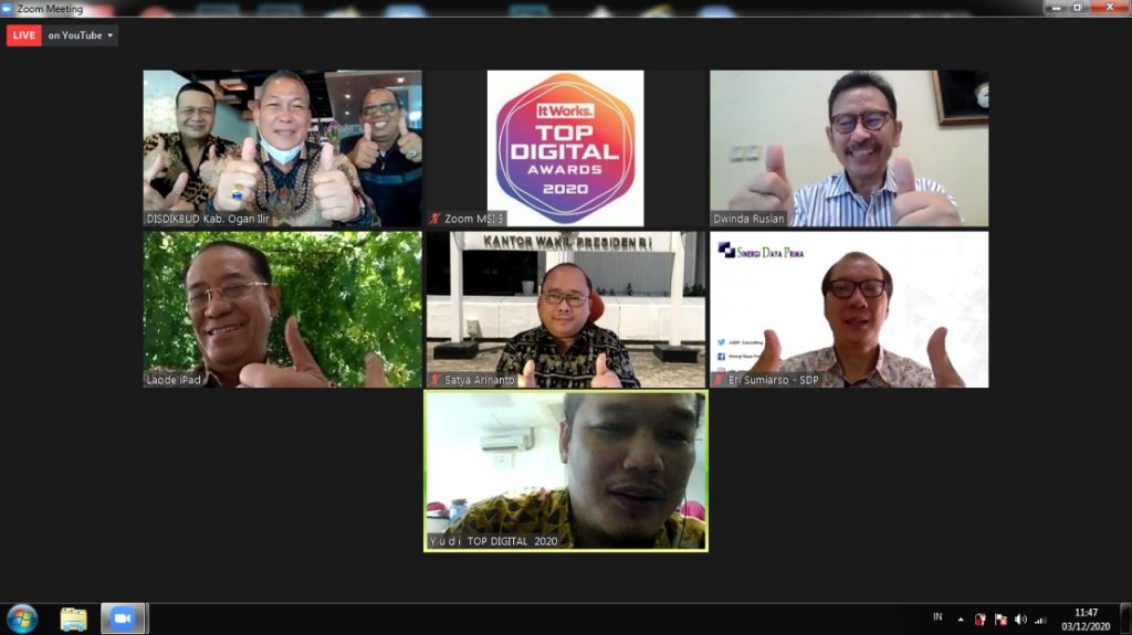 Dalam Penjurian TOP DIGITAL Awards 2020 secara virtual, Kamis, 03/12/2020, ia menjelaskan latar belakang pihaknya menaruh perhatian besar pada aspek pengembangan Sumber Daya Manusia melalui kegiatan pendidikan yang didukung TI untuk mewujudkan Ogan Ilir Smart City.