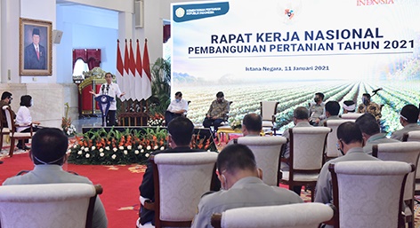 Hal itu disampaikan Presiden Joko Widodo (Jokowi) saat meresmikan pembukaan Rapat Kerja Nasional Pembangunan Pertanian Tahun 2021 yang digelar di Istana Negara, Jakarta, pada Senin, 11 Januari 2021. “Skala luas dan teknologi pertanian dipakai betul. Itulah cara-cara pembangunan pertanian yang harus kita tuju, sehingga harga pokok produksinya nanti bisa bersaing dengan harga komoditas yang sama dari negara-negara lain,” ujarnya sebagaimana dirilis Biro Pers, Media dan Informasi Sekretariat Presiden.