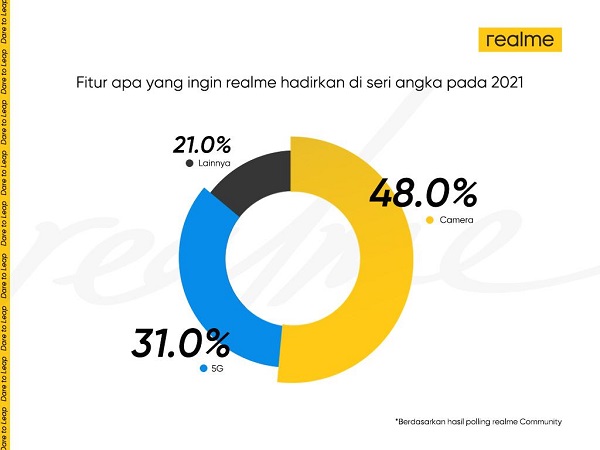 Selain memberikan informasi mengenai fitur favorit pengguna, melalui survei ini Realme juga mendapatkan ekspektasi anak muda terkait fitur apa saja yang ingin dihadirkan anak muda di Realme Community pada smartphone Realme di masa mendatang. Sekitar 48% pengguna Realme menginginkan peningkatan pada teknologi kamera di seluruh lini smartphone Realme, diikuti 31% pengguna yang menginginkan konektivitas 5G.