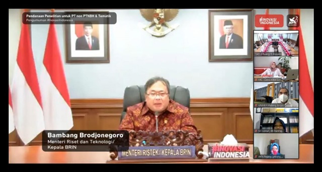 Menteri Riset dan Teknologi/Kepala Badan Riset dan Inovasi Nasional (Menristek/Kepala BRIN), Bambang PS Brodjonegoro mengumumkan pendanaan penelitian untuk Perguruan Tinggi.