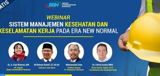 Dalam kaitan ini, sejak awal BSN juga pro aktif mendukung diberlakukannya kebijakan new normal . Keselamatan dan kesehatan kerja, tentu menjadi kunci penting untuk keberlangsungan usaha dan perlindungan pekerja. Dalam hal ini, BSN yang telah menetapkan SNI dengan mengadopsi identik standar internasional ISO 45001 menjadi SNI ISO 45001:2018 Sistem Manajemen Keselamatan dan Kesehatan Kerja (SMK3) – Persyaratan dan pedoman penggunaannya, juga aktif untuk mensosialiasikan  ISO terkait Sistem Manajemen Keselamatan dan Kesehatan Kerja (SMK3)  melalui berbagai kegiatan webinar dan lainnya.
