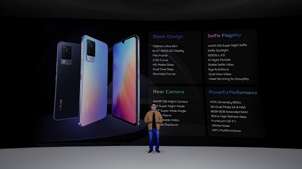 Edy Kusuma, Senior Brand Director vivo Indonesia mengungkapkan, “Vivo V21 5G telah dikembangkan untuk menjawab kebutuhan konsumen akan perangkat yang kaya fitur dan memungkinkan pengguna mengekspresikan diri mereka kapan saja dan di mana saja. vivo V21 5G hadir dengan kamera depan terdepan di industri, desain ramping, perangkat keras dan perangkat lunak yang kuat, dirancang untuk menawarkan pengalaman unik yang akan membantu pengguna menikmati setiap momen dan menjadi inspirasi bagi sekitarnya.”
