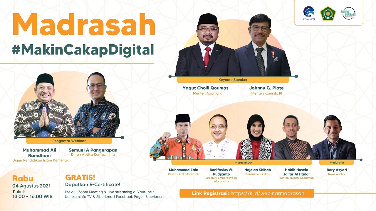 Kementerian Komunikasi dan Informatika dan Kementerian Agama bekerja sama untuk meningkatkan kecakapan digital pelajar madrasah. Direktur Jenderal Aplikasi Informatika Kementerian Komunikasi dan Informatika, Semuel Abrijani Pangerapan menyatakan, pelajar dari madrasah di seluruh Indonesia merupakan bagian penting dalam proses mewujudkan transformasi digital.
