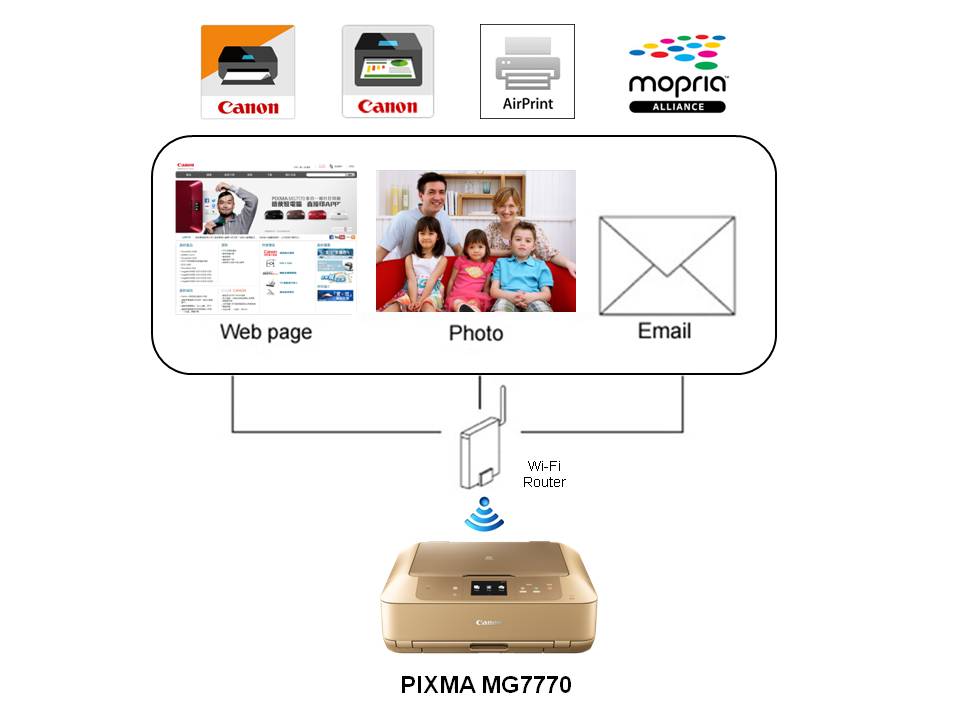 Teknologi NFC yang terdapat pada MG7770 semakin memudahkan pengguna untuk mencetak atau memindai langsung karena printer dan perangkat mobile sudah langsung terhubung. Atau, pengguna juga bisa menggunakan Wi-Fi Direct®, yang sudah tidak membutuhkan router tambahan.