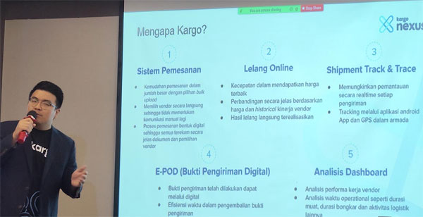 “Ini penting bagi perusahaan untuk segera mengadopsi aplikasi logistic. Mengapa? Karena, pertama perusahaan yang sudah memiliki pengiriman barang skala besar pasti butuh visibilitas yang jelas untuk rantai pasok mereka. Dengan demikian dapat meningkatkan efisiensi pada sumber daya yang kerap kali melakukan pemantauan secara manual untuk setiap pengiriman, kini dapat lebih mudah dengan KargoNexus yang memiliki sistem track and trace secara real time sehingga shipper dapat melihat status setiap pengiriman yang berjalan tanpa harus melakukan manual telepon lagi,” kata Brian Aditya Tedjasaputra selaku Head of Product dan Enterprise Solutions Kargo Tech.