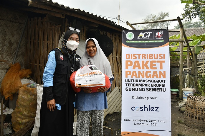 Bantuan tersebut telah disalurkan melalui Aksi Cepat Tanggap (ACT) dalam bentuk paket pangan sebanyak 60 Paket untuk 60 Kepala Keluarga (KK) atau 300 jiwa penyintas di Pengungsian Desa Sumberwuluh Kec. Candipuro Kab. Lumajang, Jawa Timur.