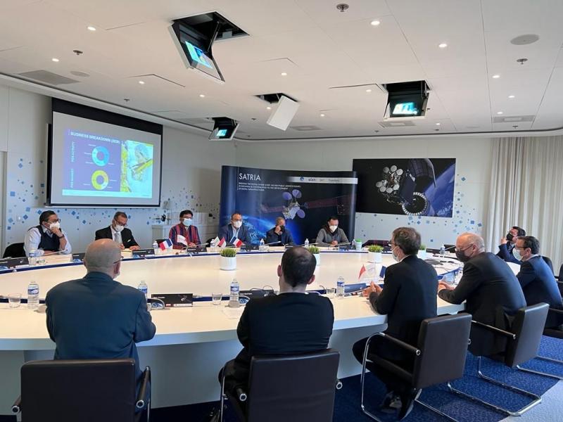 Menteri Komunikasi dan Informatika Johnny G. Plate melakukan kunjungan kerja ke Prancis dari tanggal 2 sampai dengan 6 Maret 2022 untuk meninjau perkembangan pembuatan Satelit Republik Indonesia (SATRIA) 1 di Cannes.