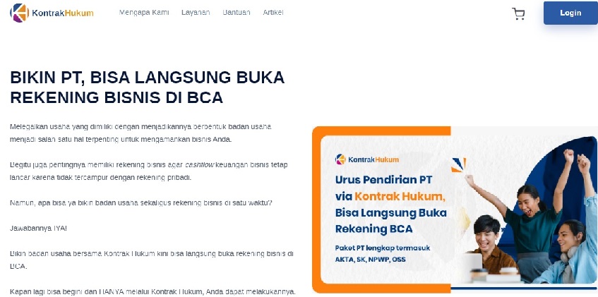 Kementerian Koperasi dan UKM melalui Smesco Indonesia bekerja sama PT. Legal Tekno Digital selaku pengelola aplikasi KontrakHukum.com untuk menyediakan layanan pembuatan akta perusahaan dalam waktu singkat.