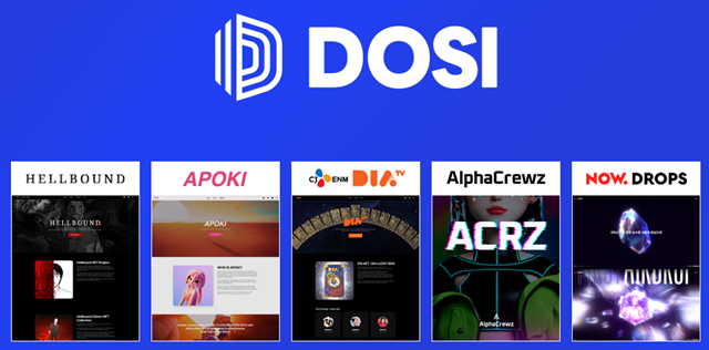 Peluncuran di situs teaser DOSI di antaranya adalah toko milik AlphaCrewz, NOW. Drops, Hellbound, DIA TV, dan APOKI yang semuanya merilis proyek NFT. DOSI Store merupakan toko merek di platform global NFT DOSI, di mana perusahaan dan merek dapat menjual segala macam proyek NFT serta membuat komunitas dan menjalankan program keanggotaan.