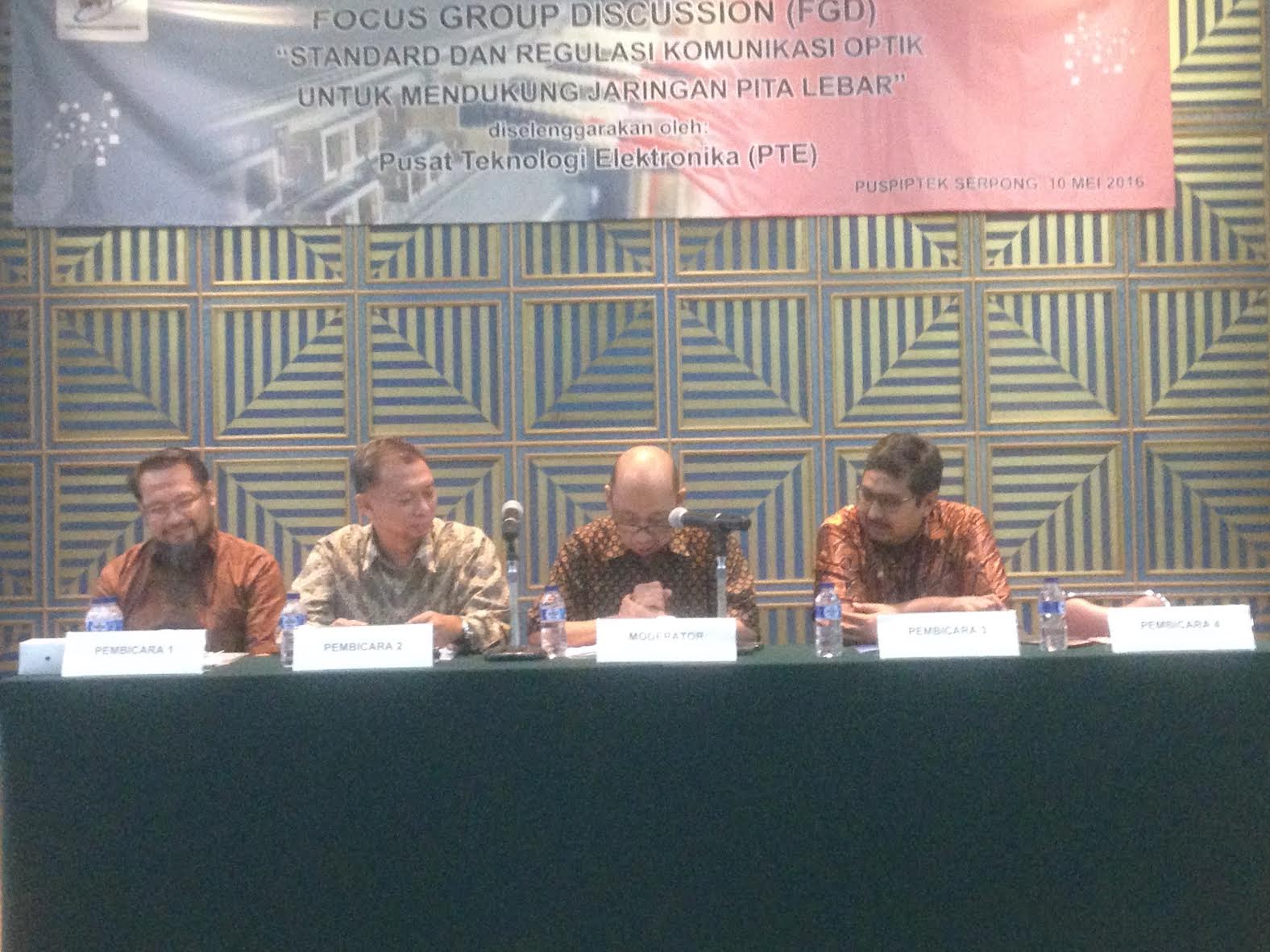 “Lab fotonika di PTE (Pusat Teknologi Elektronika) telah melakukan berbagai inovasi dalam pengembangan komponen fotonika dan dapat melakukan layanan pengujian komponen fotonika. Selain itu, dengan kompetensi SDM dan fasilitas yang ada, Lab ini juga siap untuk melakukan pelatihan komunikasi optik,” ujar Hammam Riza, Deputi Kepala BPPT Bidang TIEM di sela  FGD Standard dan Regulasi Komunikasi Optik untuk  Mendukung Jaringan Pita Lebar di Puspiptek, Serpong, Selasa (10/5).