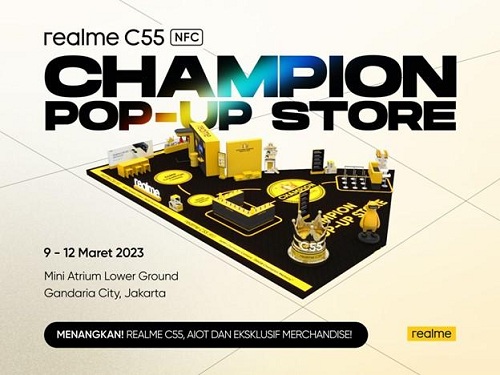 Melihat penerimaan yang baik dari pasar atas sold outnya realme C55 NFC saat Flash Sale, realme mengadakan realme C55 NFC Champion Pop-up Store pada tanggal 9-12 Maret 2023 berlokasi di Mini Atrium Lower Ground, Gandaria City, Jakarta. Beragam kegiatan realme disediakan agar anak muda bisa merasakan semangat champion dari realme C55 NFC. Terdapat Experience Area yang berisi berbagai produk terbaru dari realme, sehingga para anak muda bisa mencoba langsung keunggulan fitur dan spesifikasi yang diberikan realme salah satunya ke smartphone champion realme C55 NFC. Ada juga Champion Challenge hingga Lucky Draw berhadiah menarik seperti realme Smart TV 4K 50 inci, realme C55 NFC, dan masih banyak lagi.