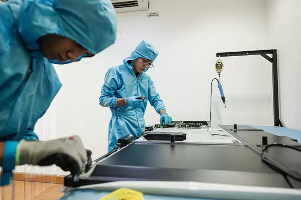 “Proses produksi yang dilakukan di fasilitas ini dimulai dari perakitan komponen (assembly process), pengujian untuk mendeteksi respon perangkat terhadap pemakaian di Indonesia (aging test), pengujian fungsi secara bertahap untuk memastikan fungsi maksimal (function test), memastikan kebersihan dan tampilan perangkat sesuai standar internasional (cosmetic inspection), dan terakhir adalah proses pemastian kelengkapan, serial number, dan juga pengemasan yang aman sehingga bisa sampai di tangan konsumen dalam kondisi terbaik,” jelasnya.