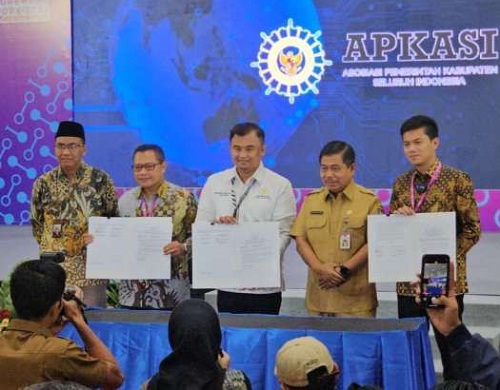 Penandatanganan MoU dilakukan oleh Direktur Bisnis Konektivitas PLN Icon Plus Sigit Witjaksono dan Ketua Umum Apkasi Sutan Riska Tuanku Kerajaan di Hall A Balai Sidang Jakarta Convention Center, Senayan, Jakarta.