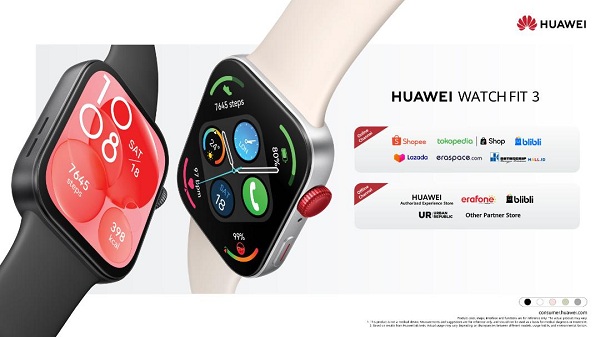 HUAWEI WATCH FIT 3 dapat di beli via HUAWEI Official Store secara online di Shopee, Tokopedia, TikTok Shop, BliBli, Lazada, eraspace.com, dan DatascripMall.ID.