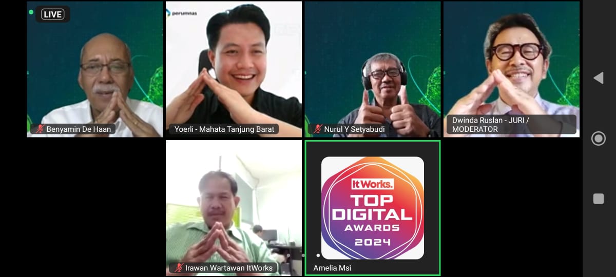 Mochammad Yoerliansah Tangkari mewakili Perumnas Samesta Mahata Tanjung Barat telah mengikuti Wawancara Penjurian TOP Digital Awards 2024, secara online, Kamis, 14/11/2024. Bertindak selaku dewan juri, yaitu Dwinda Ruslan (Yayasan PAKEM), Nurul Y Setyabudi (IDTUG), Ben de Haan (Penasehat MSI Group), dan Tesar Sandikapura (IDIEC).