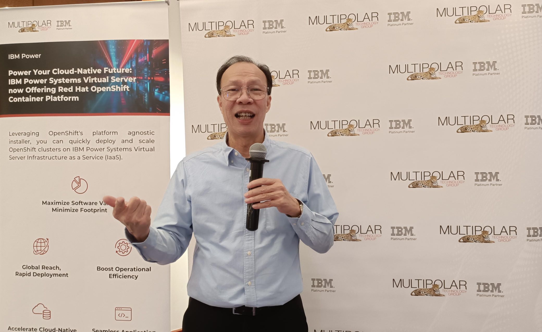 Keterangan Foto: Jip Ivan Sutanto, Director Enterprise Application Services Business Multipolar Technology, sedang menjelaskan tentang keunggulan solusi VisionDG dan IBM Power kepada para peserta seminar _“Future-Proof Your Enterprise: Modernize with IBM Power & Red Hat OpenShift”_ yang diselenggarakan oleh perusahaannya di Le Meridien Hotel, Jakarta, belum lama ini. (Foto: Dok. Multipolar Technology)