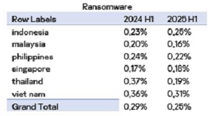 Paruh pertama tahun 2025, ransomware terus memengaruhi sebagian kecil pengguna bisnis di Indonesia, sejalan dengan tren global yang mencerminkan penyerang ransomware kini fokus menargetkan organisasi bernilai tinggi, alih-alih melakukan serangan massal tanpa pandang bulu.